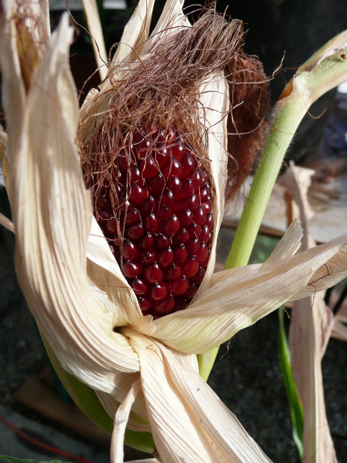 I’m incredibly excited about my first set of beans. I let the pods dry out on the vine, rather than picking them when they’re green, and the beans inside are dried! They are beautiful colors, one type is a dark yellow with maroon stripes, and another one is white and tan. They look exactly like what would come in a soup mix, so leaving them on the vine worked really well. I’m going to plant a whole bunch more to grow inside the greenhouse once it gets cold outside. It’s going to take a lot of pods to fill up a crock pot with soup. I tried the same thing with the lentils, and it seems to be working as well. I now know why lentils are expensive! There are only one or two per pod, and the plant doesn’t produce a lot of pods. I’m really curious how they harvest them on a large scale, because it took me about 20 minutes to pick like 20 dried pods. And out of that, I got like 10 lentils. There are still a ton of blossoms on the plants, though, so I’m not worried. The corn is almost ready to pick as well; at first I didn’t think we’d have any at all. It’s called raspberry popcorn, and when the kernels dry, you can pop them! I’m so excited!