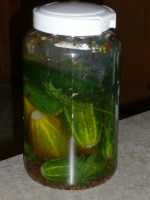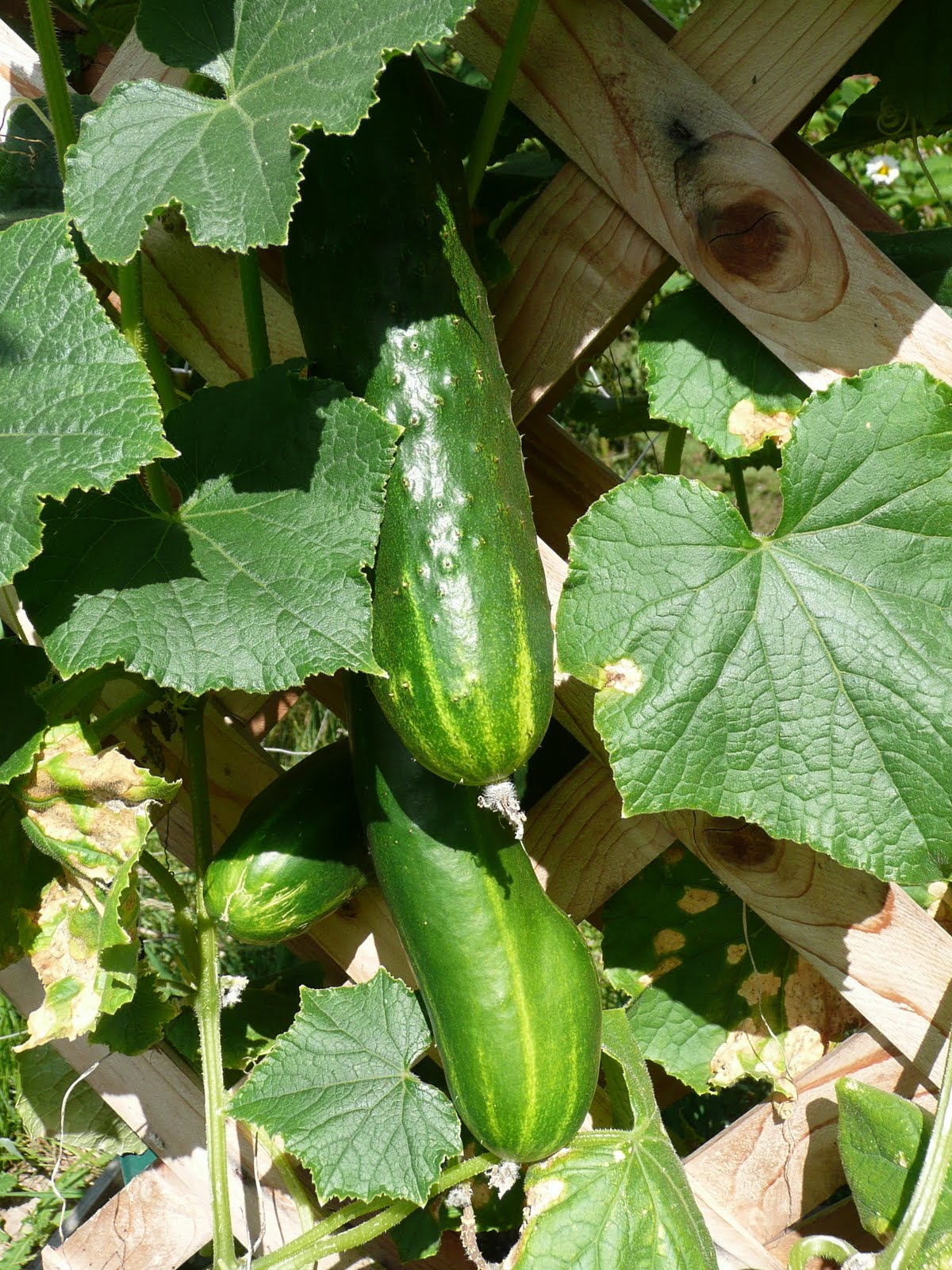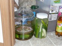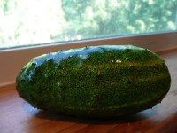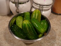 The cucumbers are doing much better than I thought they would, given how scrawny they look. I’m a little worried that they won’t grow any more though, since there aren’t any more blossoms on the plants. Hopefully the seeds I planted that sprouted last week will catch up soon. The pickling cucumbers I did get are perfect though, they’re the size you can buy out of buckets at the fair, so I’m going to try and pickle them whole.