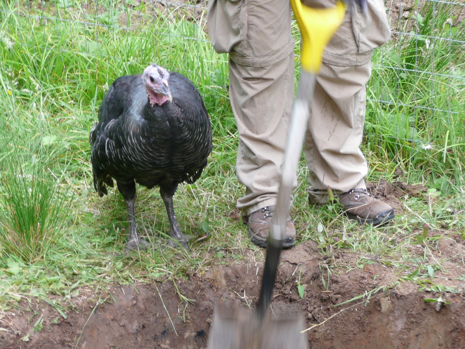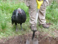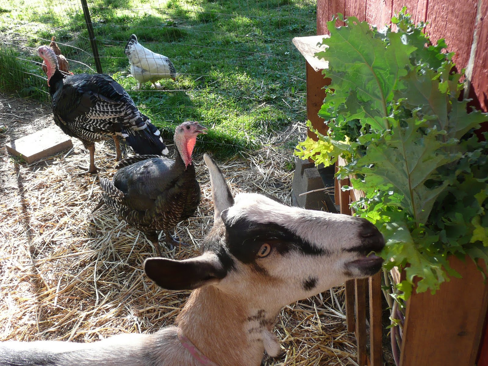 I think the bob cat was outside last night too, because just as it was getting dark Fiona and Buttercup, who were cuddling and being all cute on top of their old shed, suddenly barked and jumped like 10 feet in the air. Yes, goats can bark. It scared the crap out of me, too. So they start staring into the woods with their little goat mohawks standing straight up all along their backs. Then the chickens get into it – they’re all agitated and prickly, as are the turkeys. And everyone is staring into the woods, and of course now it’s dark outside. If Fiona could talk, she would be saying, “Mama, there’s something scary out there. Don’t you wish daddy was home?” I had to carry each chicken one by one and put them into the coop because they were too scared to go over to it. Have you ever tried to herd chickens in the dark? With a scary monster somewhere nearby? But at least now I know what I’m dealing with, which is infinitely better than not knowing what’s out there lurking (my mind went immediately to zombies, so a bobcat is way better).
