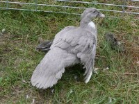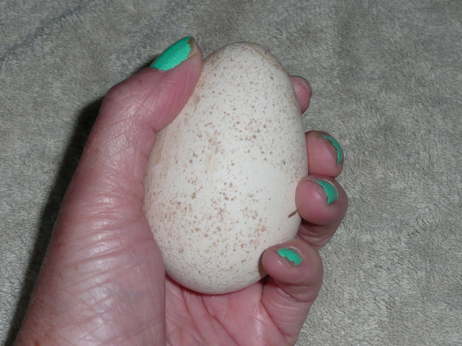 Speaking of the turkeys, HUGE news! Christmas laid her first egg! Turkey eggs are quite large, maybe four times the size of chicken eggs. This one looked like a “practice” egg, since the shell was fairly translucent. Very pretty though, covered in brown speckles. Oddly enough, she chose to lay her egg in the wading pool, which I guess makes sense, given how fond she is of dropping bombs in there. She laid the egg two days ago, and it’s still in the refrigerator. I wanted to wait until Gene wasn’t working so he could be the one to crack it open… Since she and Thanksgiving are so fond of getting them some wild turkey lovin’ on, I’m afraid it might be fertilized. (And as you may have noticed, today’s Fashion Farmer is wearing sparkle neon green).