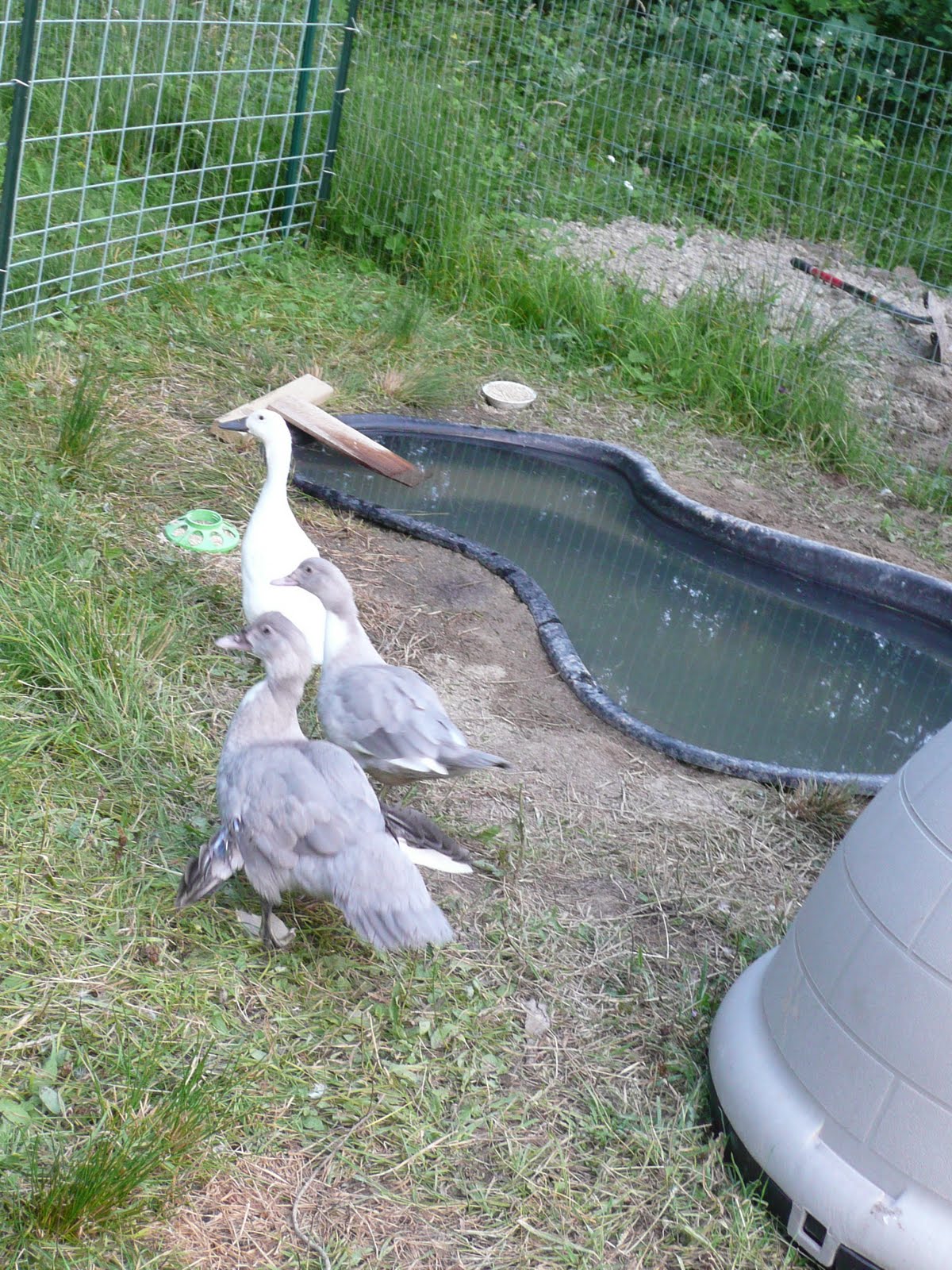The Bedonkaducks new favorite game is to play in the mud puddle created by my emptying the pool, then wash themselves off in the freshly refilled pool. If they weren’t cute it would be annoying. Their second favorite game is to blow bubbles in the puddles with their beaks… they sound like five-year-olds playing with straws in their milk glasses.
