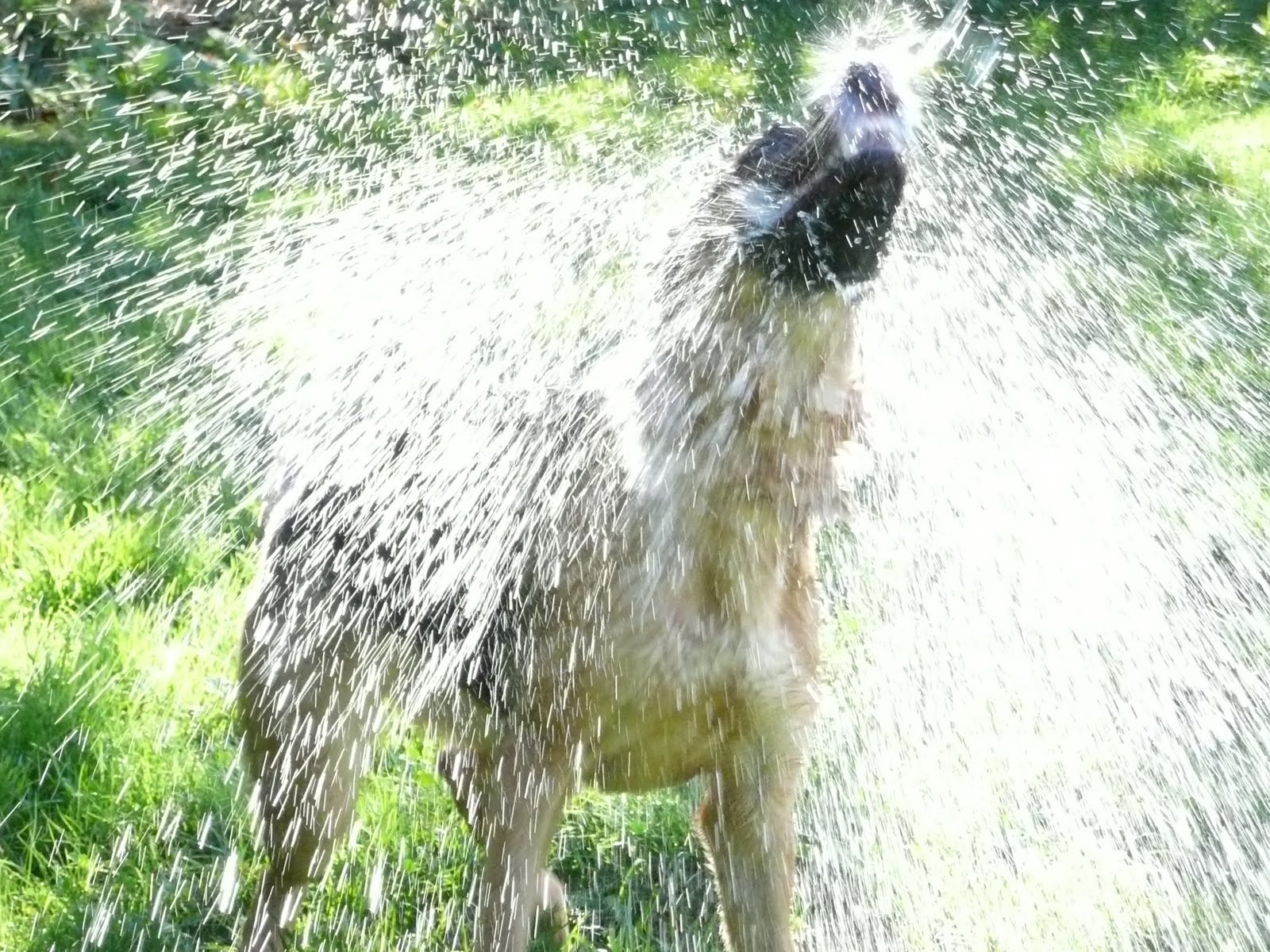 Ceri isn’t a huge fan of the heat, but she does love playing in water. Her plastic wading pool is not long for this world, since she likes to try to pick it up and empty it. I think it’s because she knows I will come fill it with the hose, and then she can play. She’s very similar to the other animals in that she loves to drop random objects into the pool. I discovered the hard way that instead of actually eating slugs, the ducks are opting to drop them into their pond, where they then die, sink to the bottom, and bloat to fifteen times their normal size. Nasty.