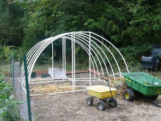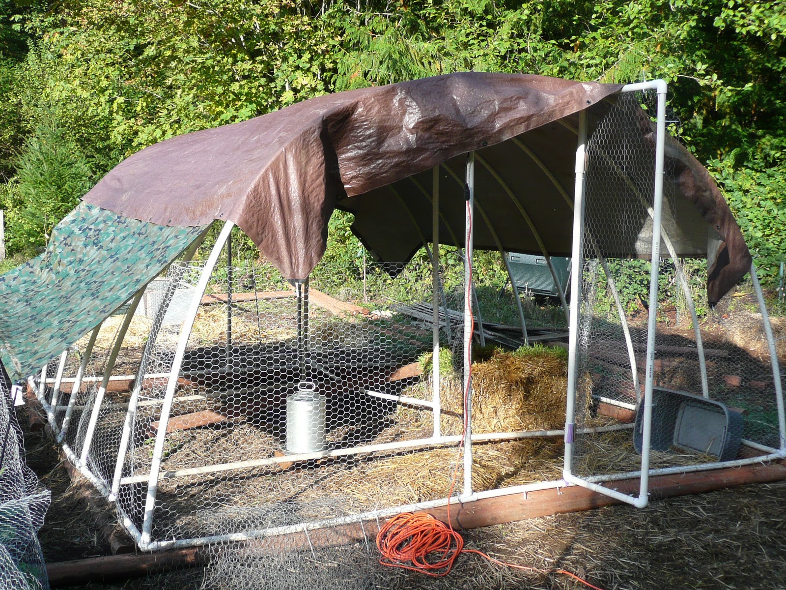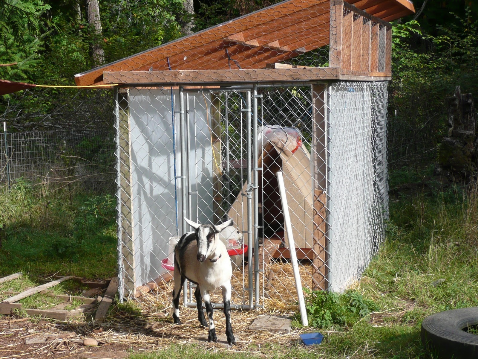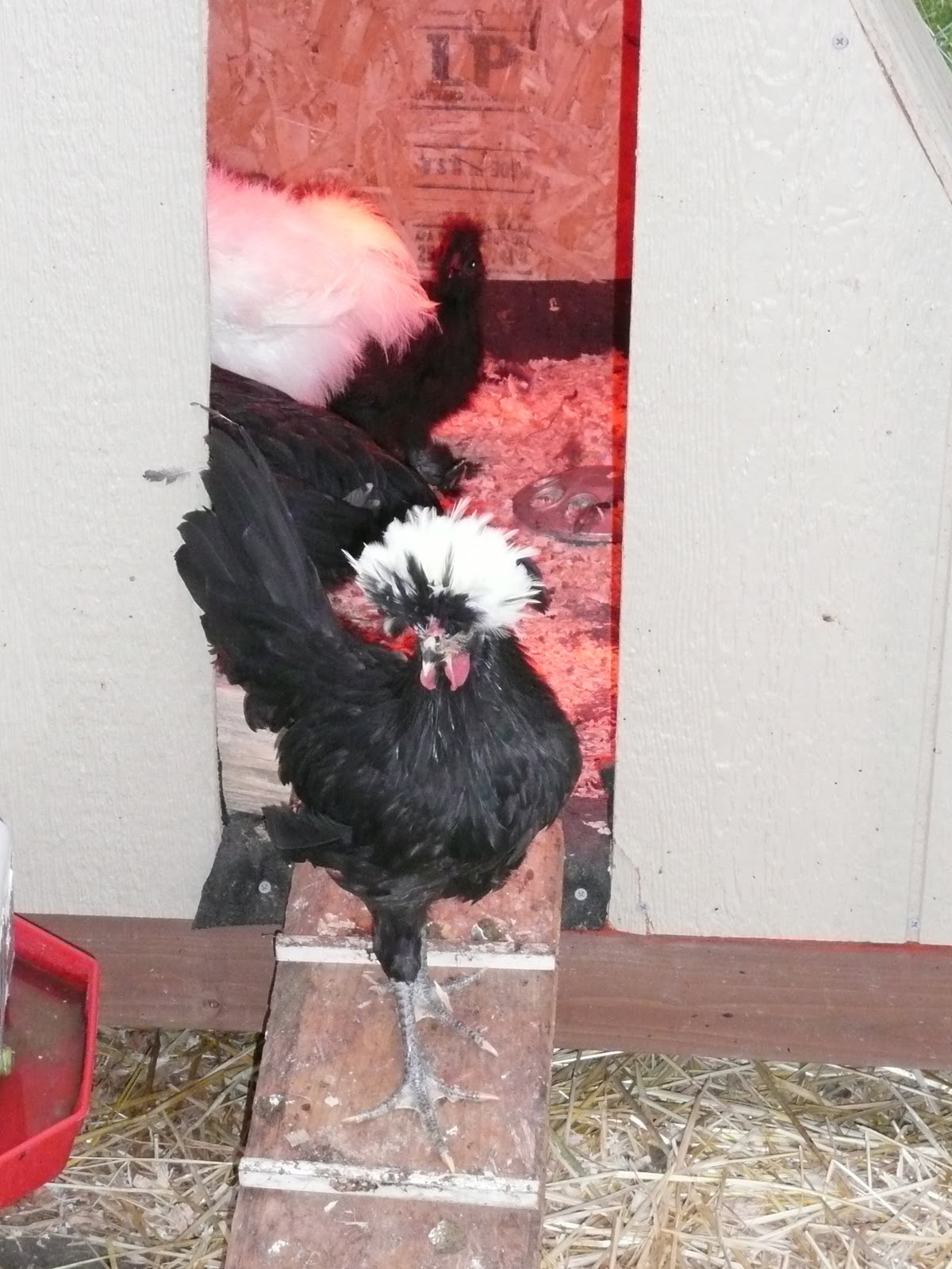 Other than that little bit of horror, things have been peaceful here on the farm. Since I’m off work for a bit and can’t do much, I sit outside on nice days and watch all the critters. When Gene’s home I supervise his work on various projects from my comfy chair. He finished the winter enclosure for the chickens, which has a distinctly red neck vibe to it. It works well, though, and the chickens go in it when it starts to rain. It even has a grow light in it.