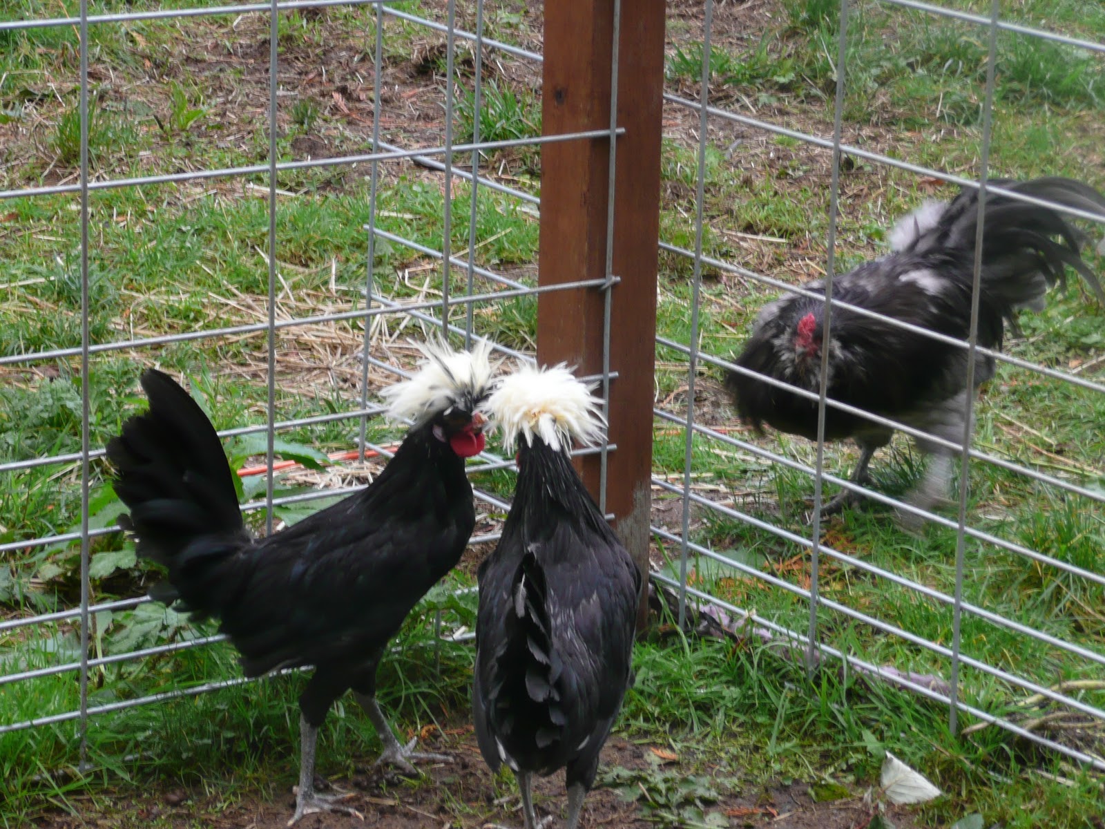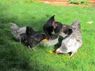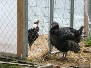 The only one who doesn’t use it is Condi – she’s still broody. I had the brilliant idea of giving her two of Christmas’s eggs to hatch, so we can get an early start on next year’s turkeys. I will know in about 28 days if that will work. In other chicken news, Gene got me five new Americauna chickens! They are about a year old, and will lay dark green eggs. I’m very excited. There are four hens and a rooster, whom I’ve named King Julian. So far they are getting along well with our girls. King Julian and the fancy roosters get into the occasional crow off, so between all the roosters and the turkeys our yard is very cheerful sounding.