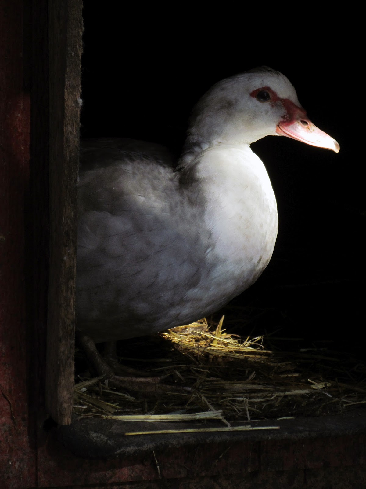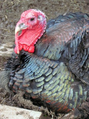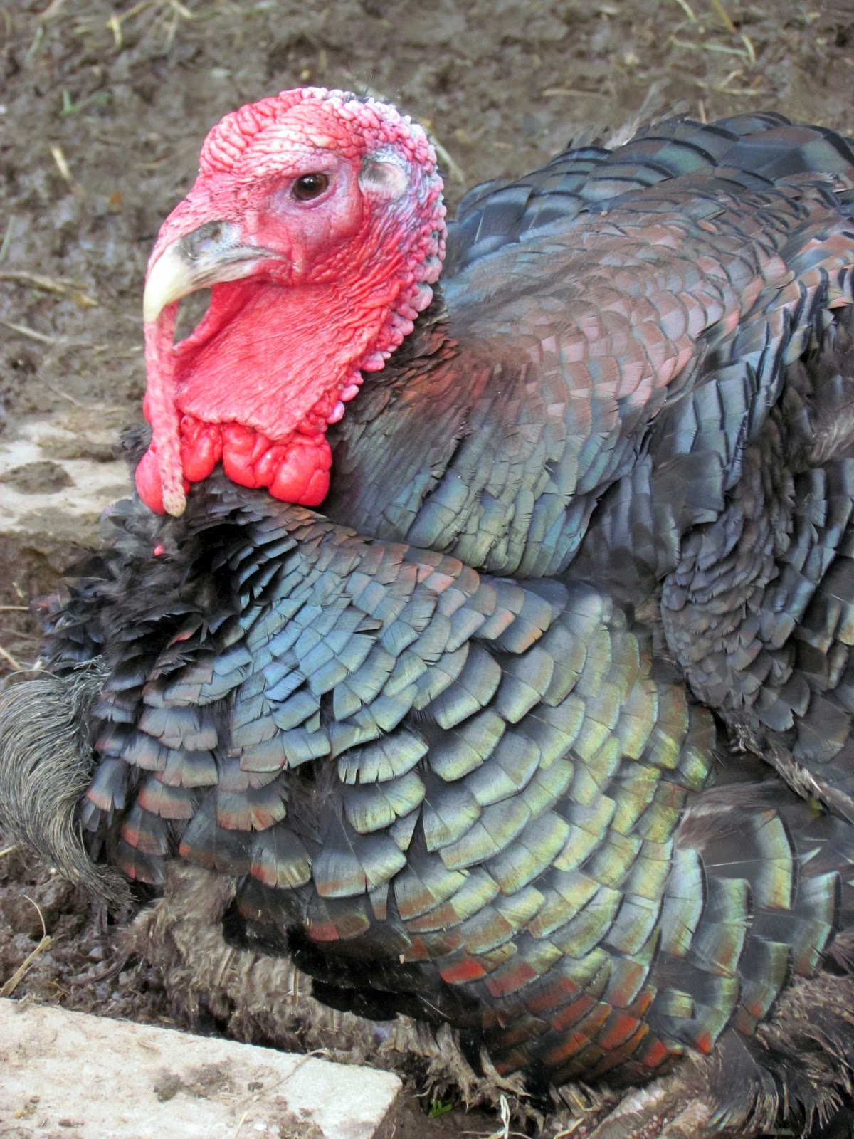 Against all odds, Thanksgiving is still alive and well. He’s actually lost a bit of weight so he can get around a little better, but anyone looking at him still exclaim, “Wow, that’s a lot of turkey!” He has absolutely perfected the art of mean mugging, and he doesn’t always want to come out of his pen, particularly if it’s raining or muddy outside. Today was one of those days where he was perfectly content to keep his food bowl company, but unfortunately for me his water dispenser was empty. Changing out the water dispenser is tricky, even when Thanksgiving hasn’t plunked his fat butt in front of it. It weighs about thirty pounds full, and since I’m still one-handed, opening and filling it is enough of a challenge without also having to navigate it around fifty pounds of grumpy turkey. Like any other predator, he can smell my fear, and he never fails to slowly sidle over to block the doorway when my back is turned and my attention is occupied with the dispenser. So when I turn around, I realize I’m forced to gingerly step over him to get out of the pen, all the while internally chanting, “please don’t take out a knee cap with your ginormous beak” over and over again. Getting the water dispenser back inside the pen is a similar ordeal, only what I’m carrying is heavier. It’s only a matter of time before I start having nightmares about waking up and seeing him perched at the foot of the bed.