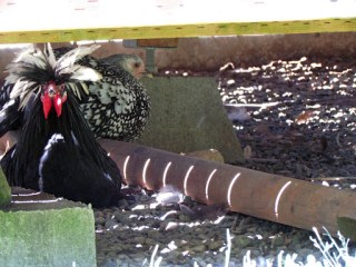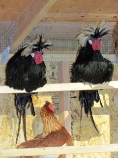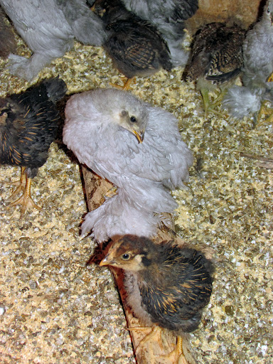 The brooding box chicks are starting to grow in their proper feathers, which leaves them looking like gawky teenage chickens. The Blue Cochins are especially funny looking, since they have huge plumes covering their legs. One chick in particular looks like she’s rocking a jumpsuit. I can’t wait to see what they look like fully grown. Blue Cochins are one of the heavier breeds, with the females weighing in around ten pounds. That’s a lot of chicken.Speaking of heavy critters, the pigs’ girth has reached an alarming size. They can still cram into the Pigloo, but just barely, and their feeding tub cracked in half due to their penchant for napping in it. I would have thought something designed for mixing concrete in would have held up a little longer, but I guess it was just one pig too many.