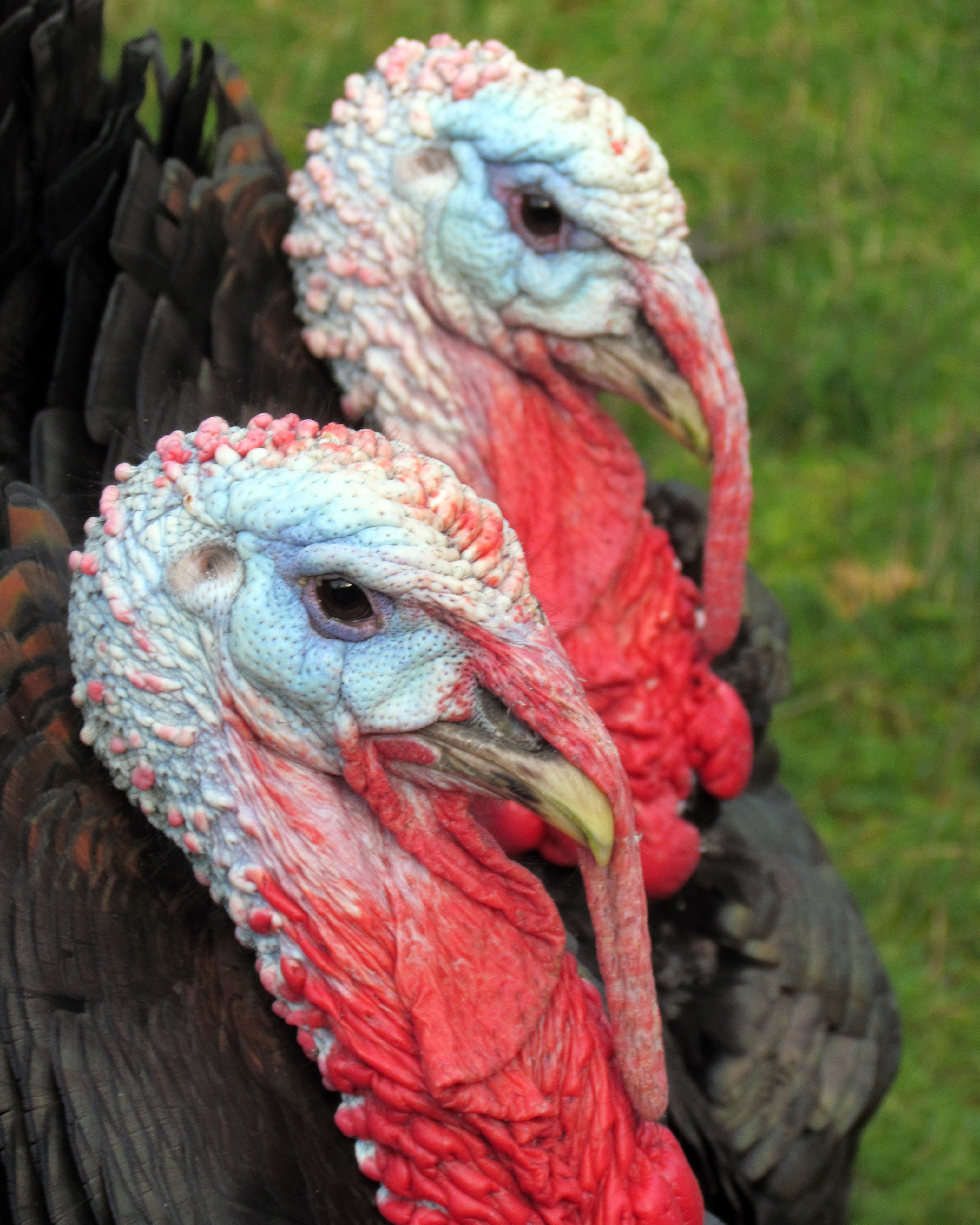 I’m ecstatic to announce I’ve solved the aggressive turkey problem, at least I hope. Much to Gene’s annoyance, my solution doesn’t involve a 425 degree oven and a variety of seasonings. Since Dimsworth and Hawthorne turned aggressive because it’s mating season, I decided it’s unfair to penalize them for just wanting a little loving. Isn’t that what every living creature wants? Someone to cuddle with during the long winter nights? I’m picking up two turkey hens on Monday, so hopefully that will distract them enough to stop attacking poor Fiona. Until then, I’m keeping them outside the pasture, which doesn’t seem to bother them overly much. Since it’s been so cold, I’ve been closing them in at night in the old chicken coop, then letting them and the resultant cloud of turkey stench out at dawn. I was worried about what they would do when it starts raining again, but Abigail laughed at me and pointed out that they aren’t exactly waterproof in the wild, so they should be fine. I guess that explains why I couldn’t find any patterns for turkey raincoats on the Internet. (Yes, I looked. Don’t judge).
