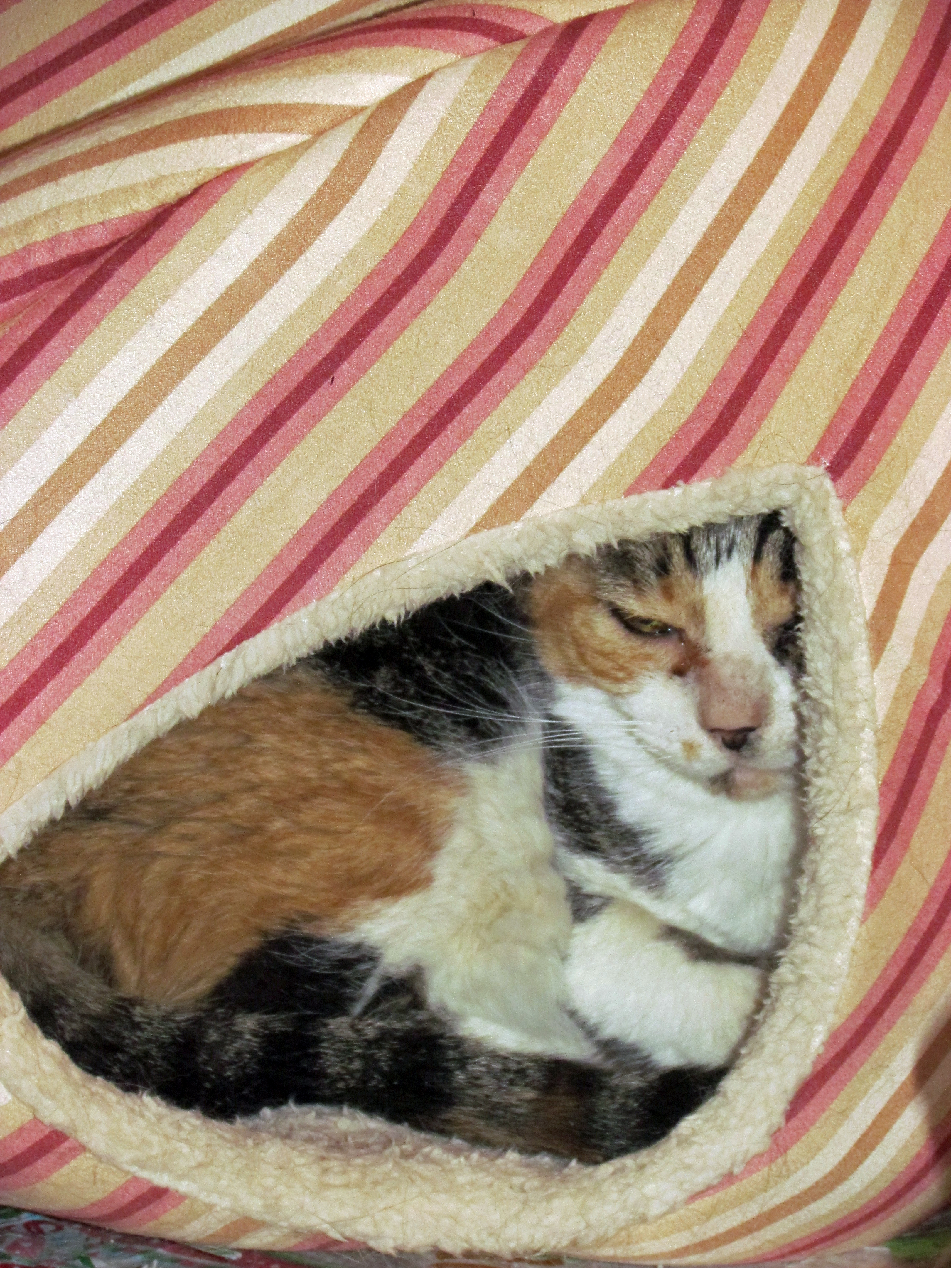 a big hole in the top. The chickens have been trooping in and out of the giant shell all day, slowly hollowing it out. Even the ducks love chowing on pumpkin innards. That’s about all I did to mark Halloween’s passing. I dressed up as a flannel-covered couch beastie, whose natural habitat includes any room in which there’s a TV playing. I’m happy to say I stayed in character for most of the night.