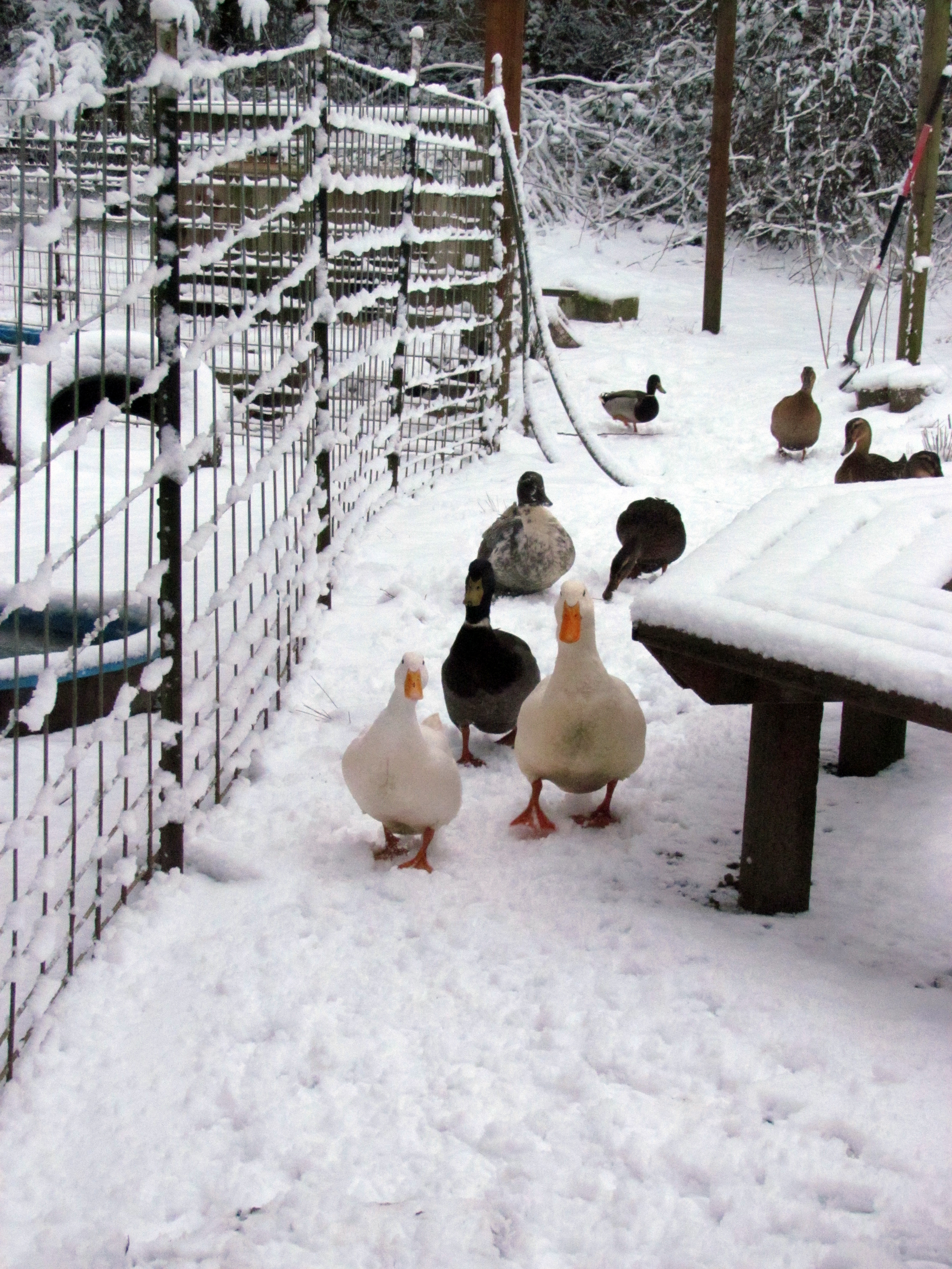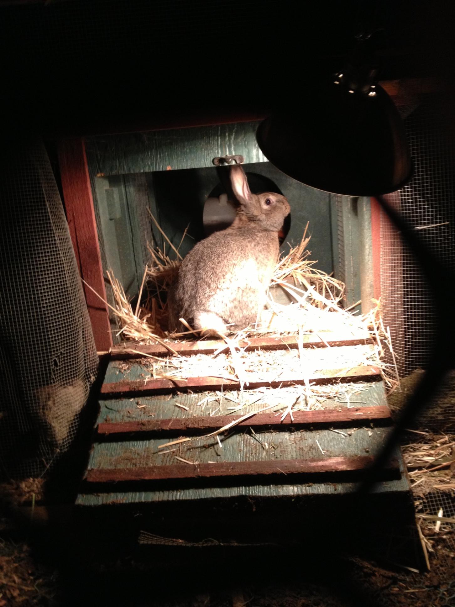 Whenever the rain gets to be too much, and I’ve already spent hours in the greenhouse, I cheer myself up by giving the critters treats. The quails love kale, which I give them once a week. (Lately I’ve been on a kale chip kick, since they’re so much better for you than potato chips. About once a month, I’m tempted to eat salt right out of the shaker, and they totally satisfy that craving. Mmmmm, salt.) The ducks and chickens love rice, and the bunnies of course have their Wheat Thin addiction. I haven’t found a treat that Shy Shy loves, besides his grain. I’m sure it’s out there, I just haven’t found it yet.