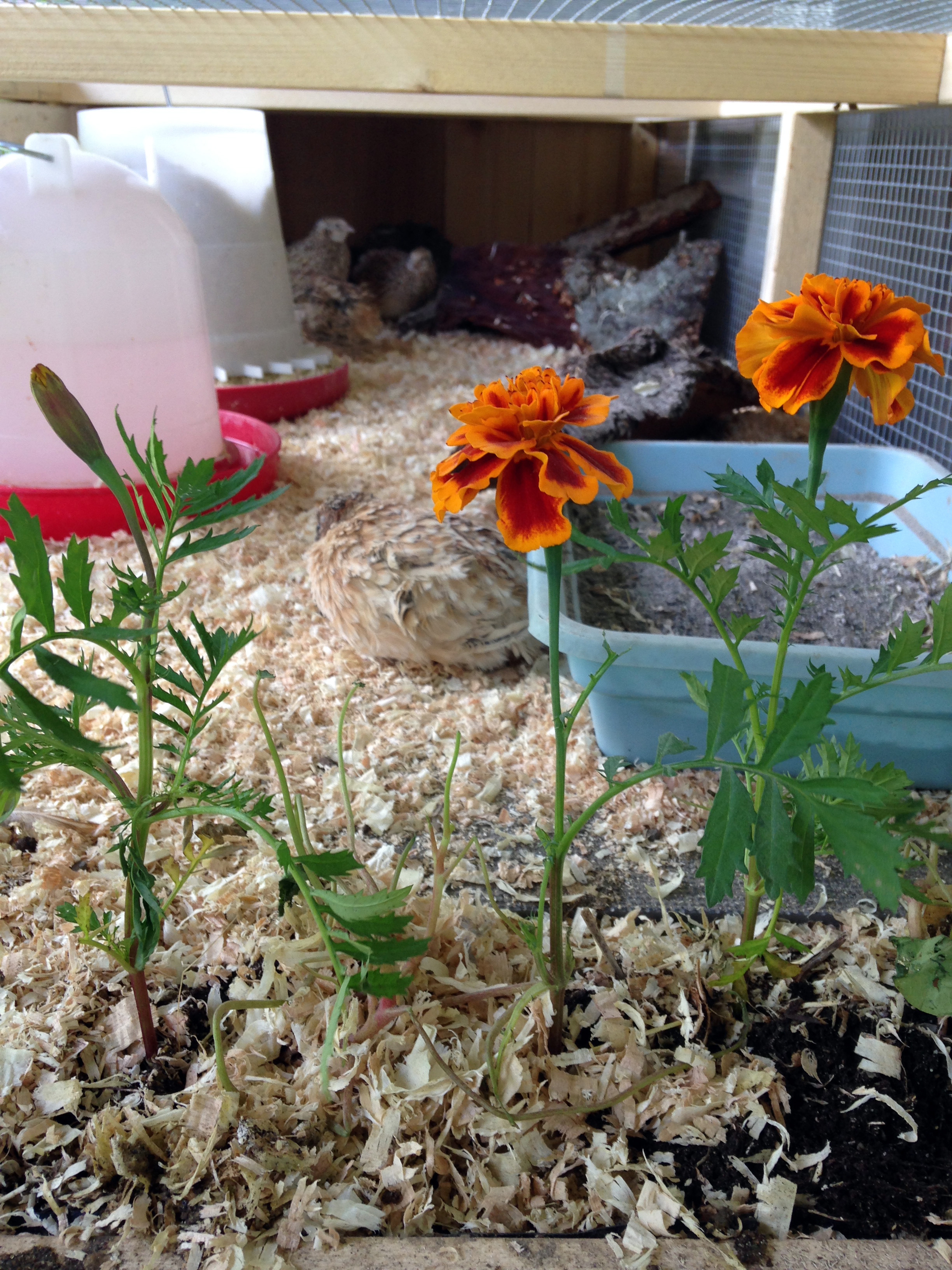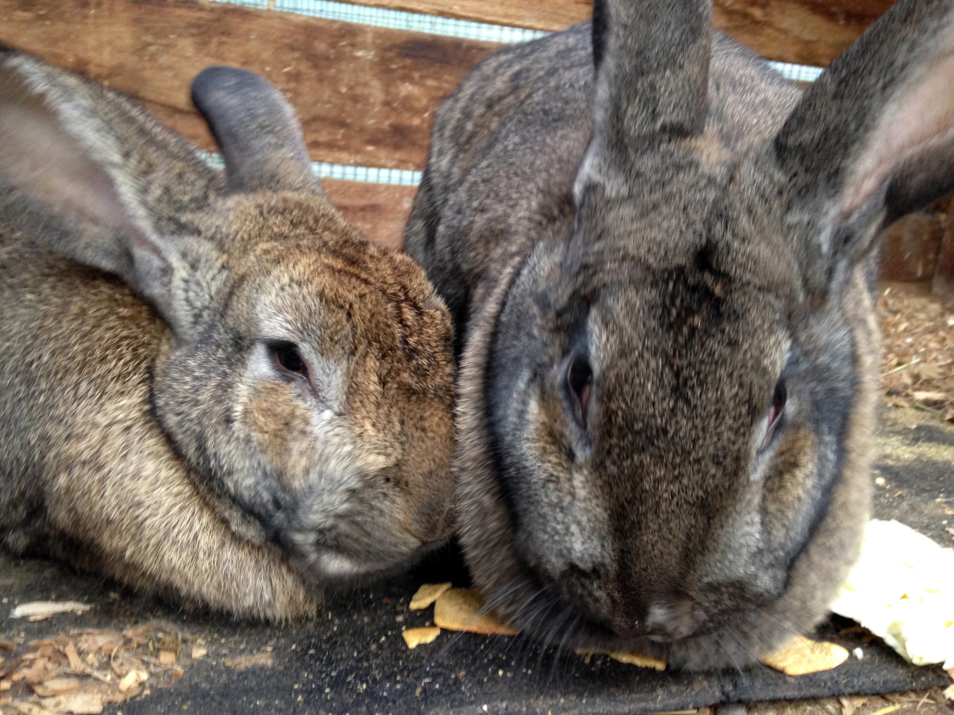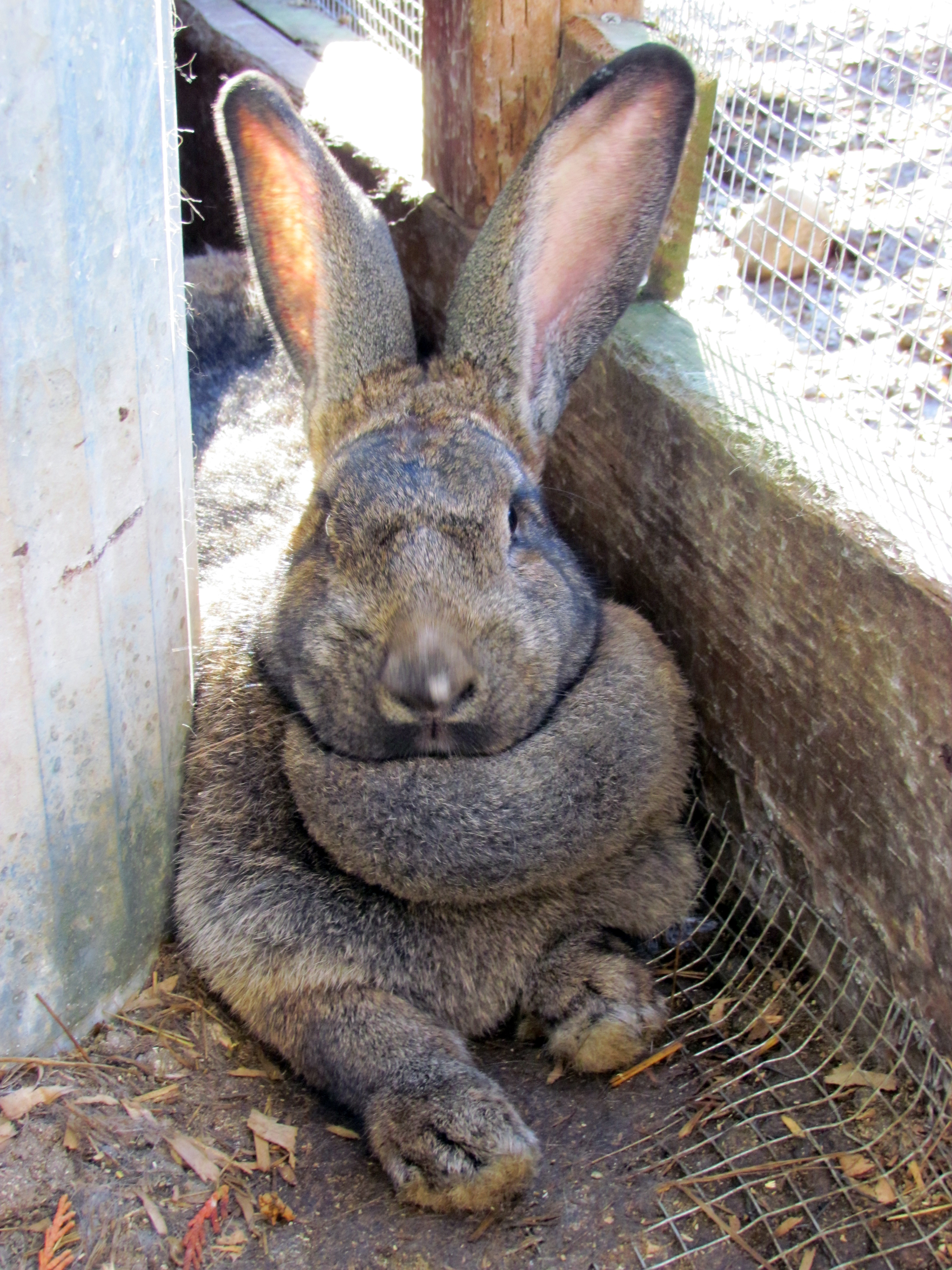distract her with a treat and stick his head in the nesting box. He was able to count four babies before he heard the growling and the thundering of angry bunny paws coming right for him. Knowing the way bunny math works, she probably has about 54 of them in there. I’ve been letting Harvey come out during the day; he’s content to hop around by the deck, scattering chickens and turkeys and ducks in every direction. He only stays out about fifteen minutes, then comes back to check on mama. It’s pretty cute, actually.