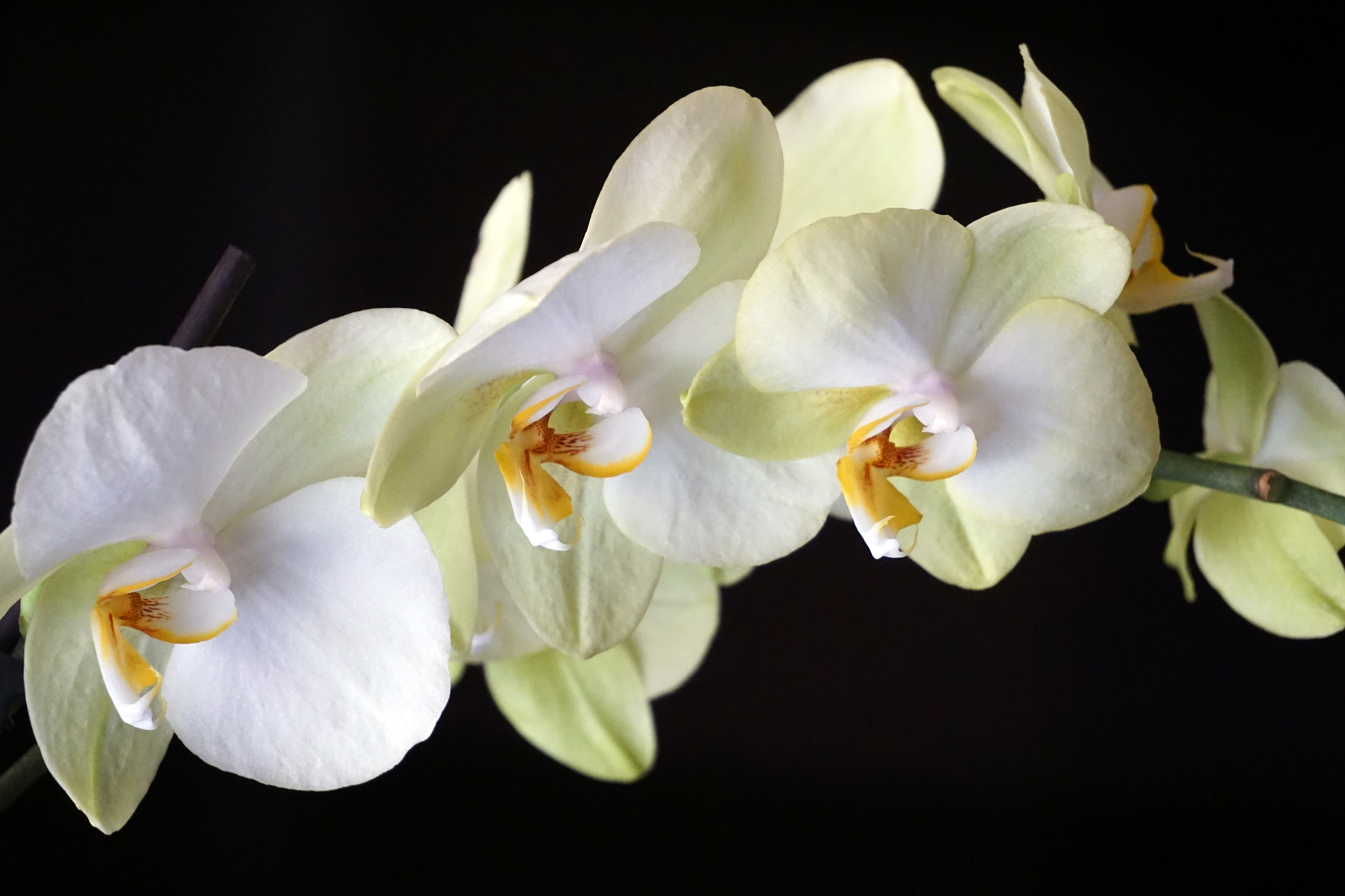 Other than that, the only other magical thing that’s new this week is sitting on my kitchen window sill, in the form of a couple of potted orchids from the clearance bin at the grocery (granted, it’s not where all the other connoisseurs get their orchids from, but you have to start somewhere.) I got the first one a week ago, a gorgeous white one, for $3.99. On the way back we stopped and got her some proper orchid soil and a nice pot, only to get home and discover that if you re-pot them prematurely, they get “resentful”. That’s the exact word the Internet used. DSC02989Thank goodness I looked it up first, since the last thing I need is a grumpy, ungrateful houseplant. I can’t find a definitive answer for how you know they want to be re-potted, so I’m hoping they wave a sign. Then yesterday, on my way to the beer aisle, I happened to spot one last remaining orchid in the bin, now marked down to 99 cents. And if ever there was a resentful orchid… he did not look happy. But I took him home (yes, he’s a guy), soaked him and his pot in some water, trimmed all the dead blossoms off, and he perked right up. I’m hoping this is my first step towards becoming an orchid farmer…