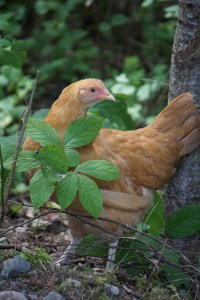 The chickens have completely gotten over their hesitation about roaming in wide open spaces, and now I look out the window to find them hanging out by the goats, circling the truck looking for bugs, and cheerfully wandering the long driveway. They’ve claimed a wooded gully right by the woodshed for afternoon siestas, and I’ll find them perched on low branches contentedly watching the world go by. Once they start laying we’ll probably miss a few eggs, but they’re so gleeful about exploring the world I think it’s worth it.