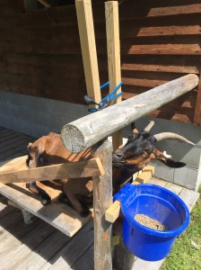 She kicked the container, stepped in it, or tried to sit down on our hands. Of course my T-Rex arms can’t handle that kind of wide load, but you know what they can do? Take away the grain bucket. She quickly put two and two together, and that ended the milking shenanigans.