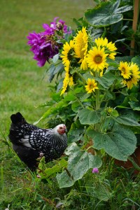 I’ve discovered one downside to having a roving herd of chickens happily roaming the property. Despite having 80 acres to wander, they all seem to end up crammed in my dahlia bed. The one spot of decorative landscaping I’ve poured all my efforts into is being treated like the salad bar at Old Country Buffet.