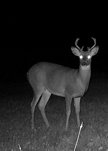 The problem is I’ve gotten what some might call “attached”. They know me, they barely move when they see me walking to their feeding spot with two bright pink scoops of food, and I can walk within 10 feet of them. Which is actually a little scary, being surrounded by that many deer so close. And when I turn my back they creep up and start Hoovering the feed, so if I turned around I could probably pet one. One of the younger males has even started making puffing noises if I don’t get there fast enough. I hope he doesn’t start stamping his hoof, I don’t think I could run with two full scoops.