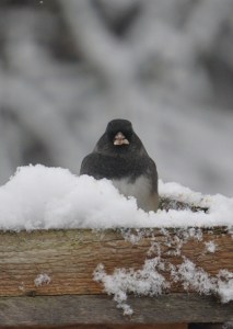 I am glad hunting season is over though, it was a traumatic time for me. It all started when I noticed that the jaybirds and chickadees were looking particularly hungry, and they’re all poofed out and cold. So in addition to their morning peanuts, sunflower seeds, and suet buffet, I started putting out dried corn. Then a mama deer and her tiny baby started coming by… so I convinced Gene to buy a bag of deer feed.