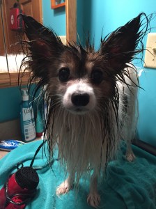 On the plus side, an 8-pound Papillon can’t wreck the bathroom to the same extent a 100-pound German Shepherd can and will.