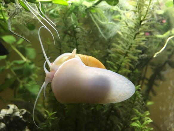 And that’s not the only place where romance is in the air. The last time Gene dragged me into WalMart, I noticed they had some Mystery Snails in what passes for their aquatic pet department. I figured they’d make a great addition to Yandu’s tank, and help out with the algae problem.