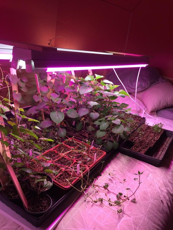 By the time June rolled around, I had a basement with a row of new grow lights hanging from the ceiling, a couple tables covered with a huge piece of plywood, and a grumbling husband who probably got a bit tired of being informed that he was “doing this for the bees – think of the beeeeeeees.”