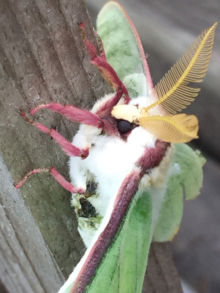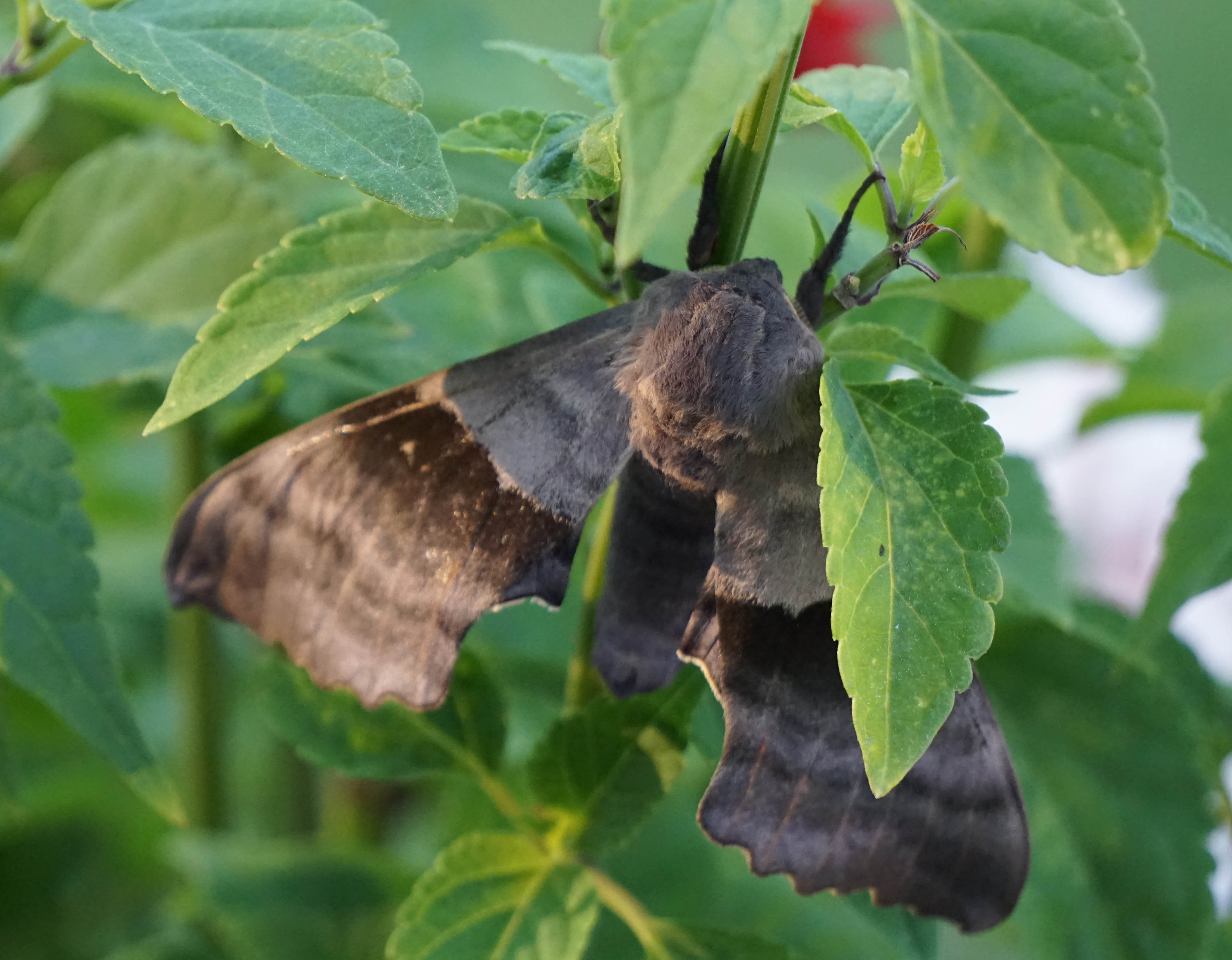 At any rate, it was all worth it – we’ve attracted an amazing variety of moths. I chose plants that both host the caterpillars and bloom at night, and I love puttering around in the morning looking at them all. They hide in the leaves or bask in the sunshine, waiting for the dance party to start when Gene turns on the porch light after dark.